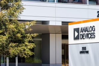 Analog Devices shares were sinking early Wednesday after the chip maker topped expectations for its…