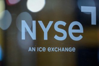 © Reuters. FILE PHOTO: A Wall Street sign is pictured outside the New York Stock…