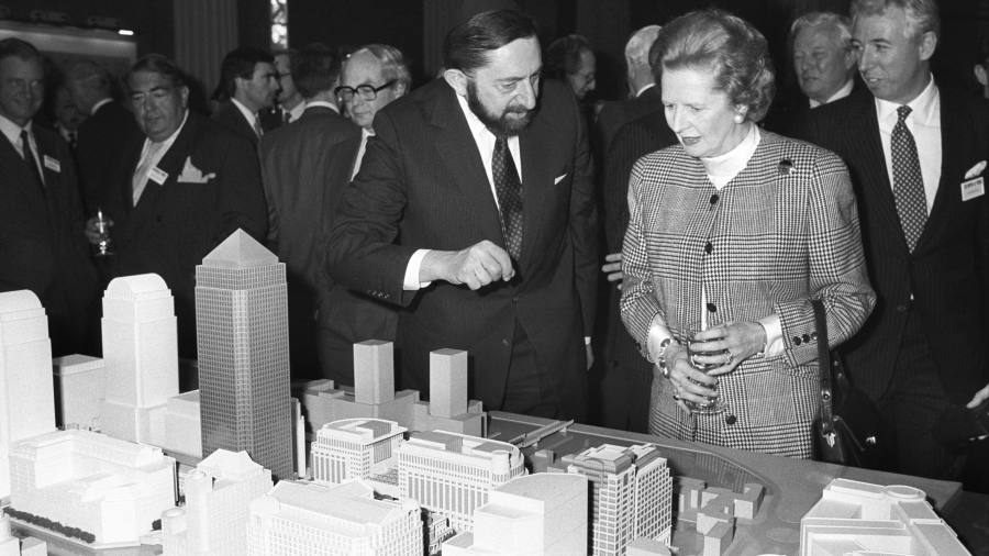 Canary Wharf was the result of a blend of Thatcherite politics, Big Bang deregulation and Michael Heseltine’s experiment with the London Docklands Development Corporation — a turbocharged privatisation and lightly regulated and untaxed development of public land. Canadian Developers Olympia & York were wooed by Thatcher, planning to do for Docklands what they had done for downtown New York with the World Financial Center.