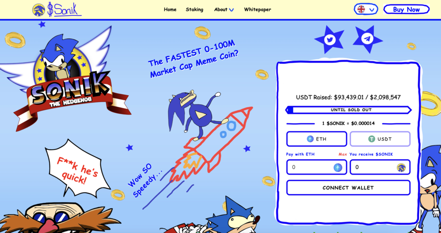 Launched on the Ethereum chain, the $SONIK token’s maximum supply is a meme-worthy 299,792,458,000 – the speed of light and the speed at which Sonic runs to collect his coins.