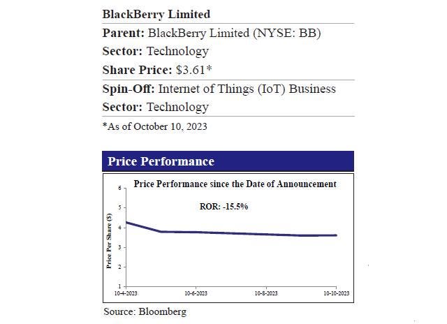 On October 4, 2023, BlackBerry Limited (NYSE: BB, $3.61, Market Capitalization: $2.1 billion), a leading provider of security software and services to enterprises and governments, provided an update regarding the review of its portfolio of businesses (named as “Project imperium”), which commenced on 5/1. Based on the input from the current process and with the support of management, the Company determined that separating the Internet of Things (IoT) and Cybersecurity business units into two independently operated entities is the optimal strategic direction for the Company. BlackBerry plans to carve-out its IoT business via an IPO into a separate publicly traded company, with a launch targeted in the first half of the next fiscal year (1H24). IoT business consists of BlackBerry Technology Solutions (BTS) and BlackBerry IVY, a market leader for high-performance, safety-critical foundational software in automotive and other verticals. On the other hand, BlackBerry (Parent) will continue to run Cybersecurity, Licensing, and other businesses. Although more information regarding the IPO of IoT business is not available yet, the Company will host an investor briefing regarding the Project Imperium update on 10/17 (Tuesday) at 1:00 pm ET.